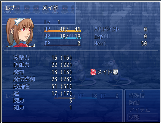 それから戦闘中にステータスを確認できる"状態"コマンドを追加しました。