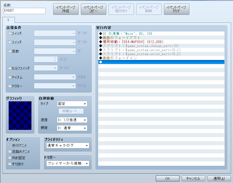 ただし0番は自動的にゲーム開始時のパーティがセットされます。