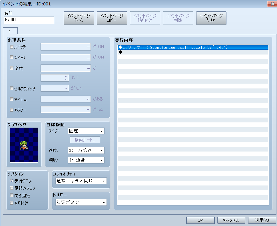 使う画像素材は/Graphics/Picturesに入れてください。$data_puzzle15Pic_filenamesは画像素材のファイル名の配列です。(例:$data_puzzle15Pic_filenames = ["testest.png", "fray.jpg"])・実行・その1(直接定義)